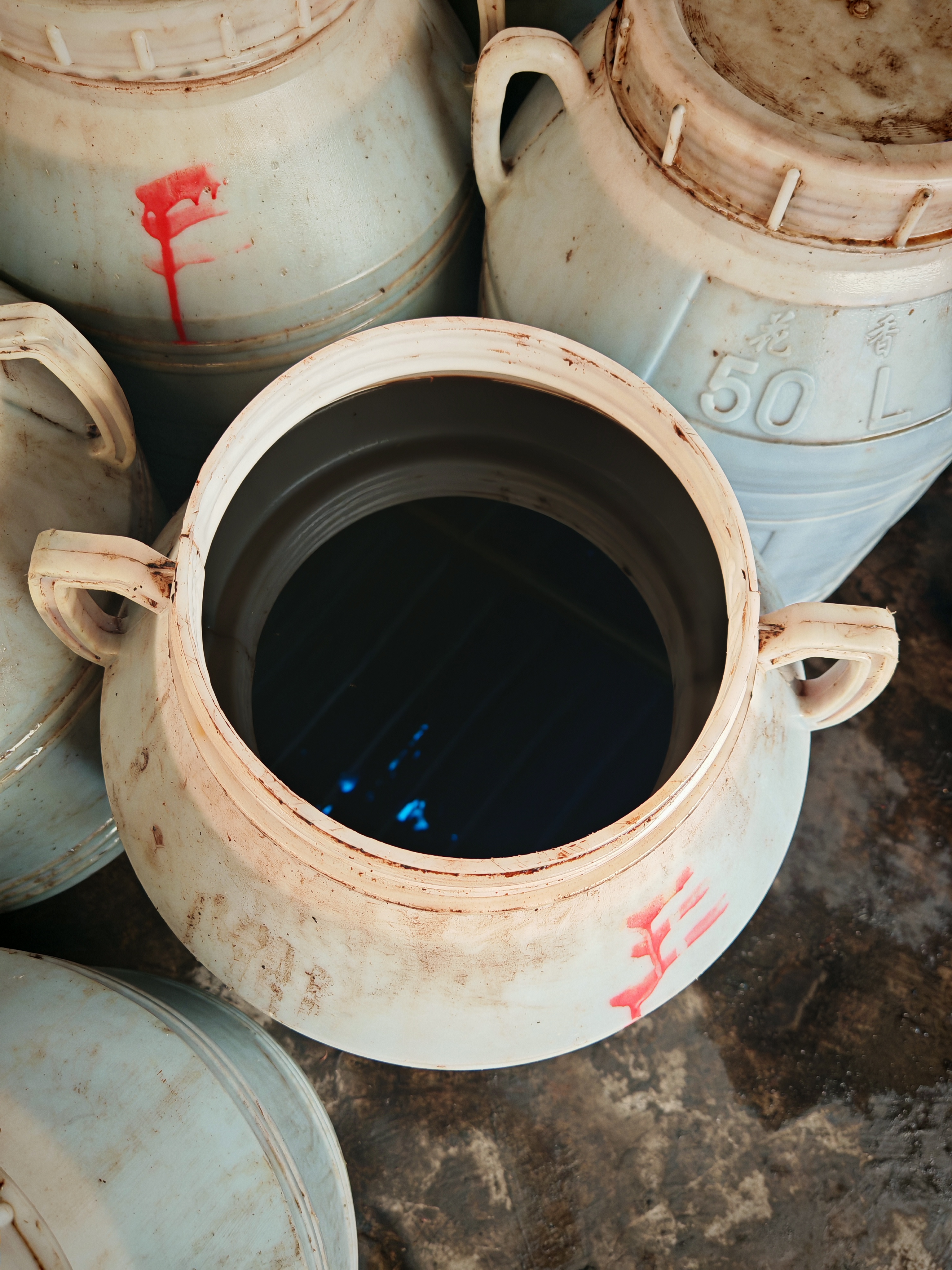 工作组随后参观了废弃油脂中转仓库,现场查看了普通废弃油脂和经过初筛的精油样品,详细了解从回收到初步处理的完整流程。